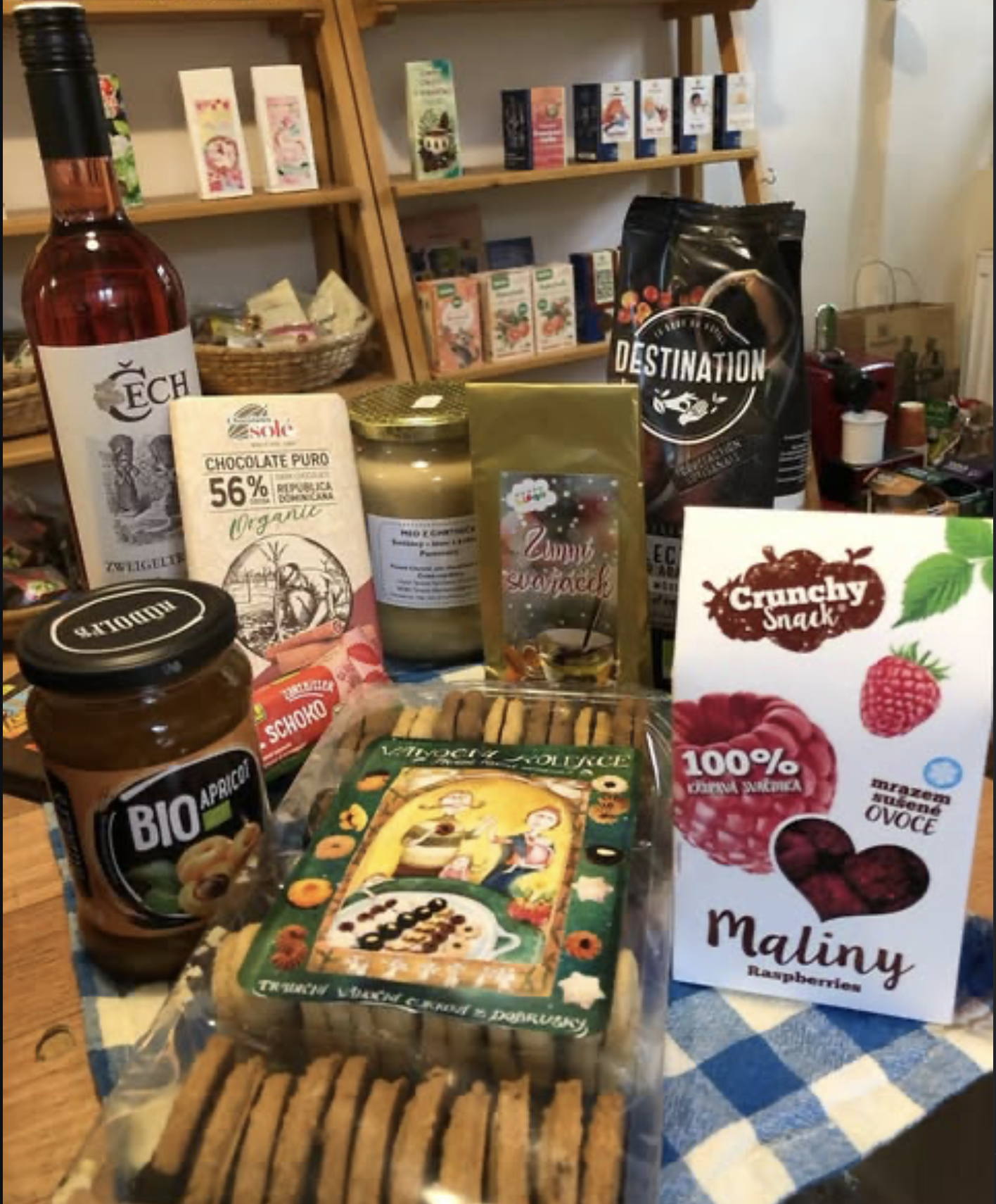 Farmářské produkty a výpěstky českých sedláků, kravské i ovčí sýry ze statků Biovavřinec a Horní Dorce, vejce od pana Krále, kozí produkty z Ratibořic, ovoce a zelenina z farmy pana Tachecího, med od pana Peška, krůtí maso, denně čerstvé pečivo, české bezlepkové pivo, moravské biovíno, chlazené biovýrobky, vegetariánská strava, mořské řasy, ochucovadla, mořská sůl, cukry, mouky, bio pečivo, těstoviny, obiloviny, luštěniny, biozelenina a ovoce, čaje, kojenecká strava, zdravé mlsání, káva, kakao, čokolády fair trade, biopivo, biovíno, šťávy a mošty, produkty vhodné pro bezlepkovou dietu, ekologická drogerie Ecover, a mnoho dalšího…